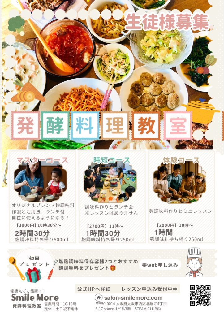 大人向け発酵料理教室|大阪市西区北堀江子連れOK・初心者歓迎の発酵麹調味料レッスン