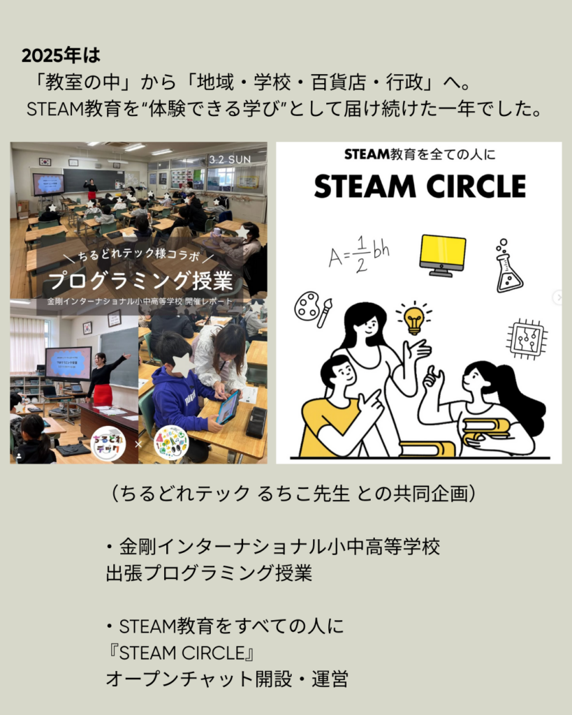 地域・学校・百貨店・行政と連携しながら、STEAM教育を“体験できる学び”として届けてきました。
